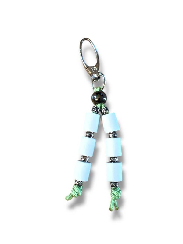 J’ai le plaisir de vous présenter la breloque anti tiques. Egalement réalisée en paracorde et céramiques EM, elle est munie d'un mousqueton et s’accroche simplement au harnais de votre chien, à son collier, à la tirette d'une veste ou d'un sac,etc...