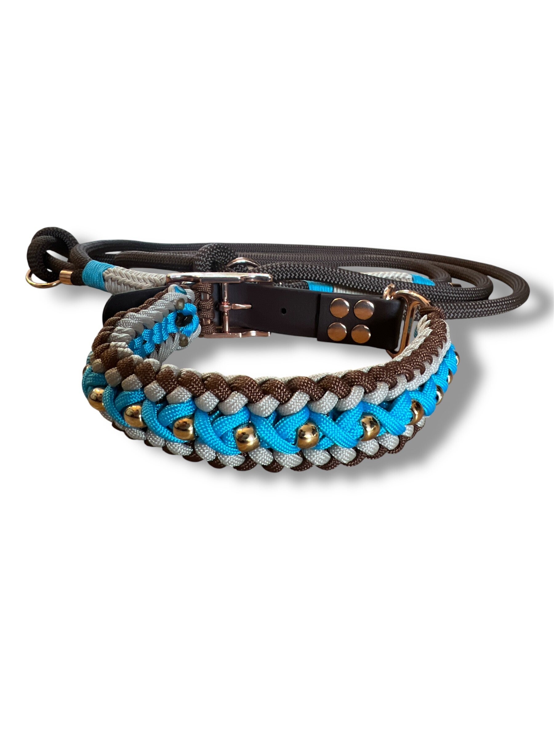 Paracorde 3 couleurs, perles or m, fermetures biothane, 48 à 52 cm.